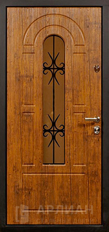 Утепленная входная дверь для коттеджа с кованными элементами №28