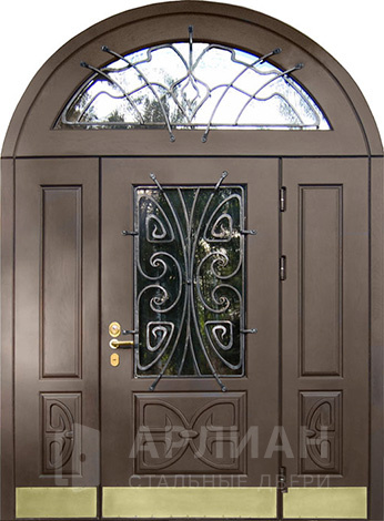 Стальная входная дверь с ковкой и решеткой в полной комплектации №52