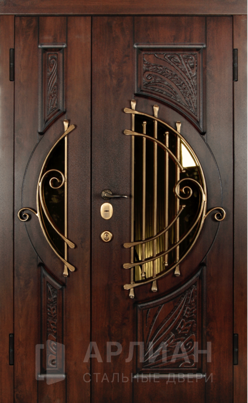Утепленная входная дверь для коттеджа с кованными элементами №28