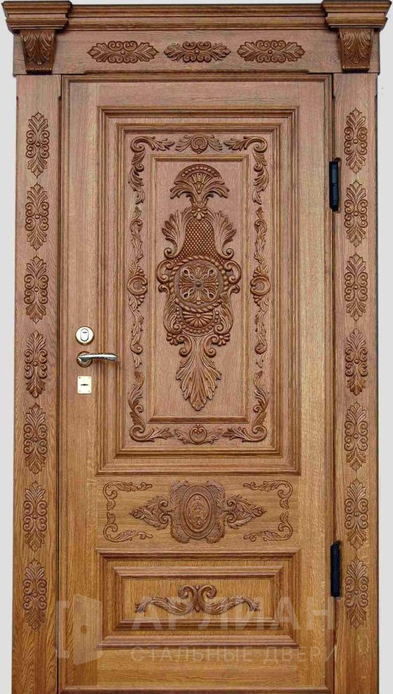 Стальная парадная дверь из массива дуба снаружи №107