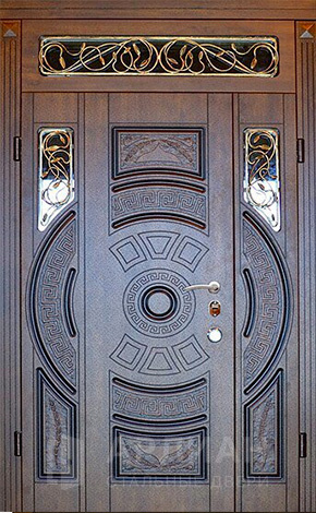 Металлическая входная дверь в коттедж с верхней фрамугой №10